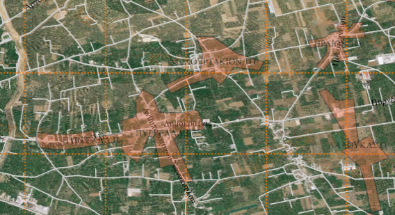 Χρήση του geoserver σε χάρτη στο browser (τοπικά) με διαθέσιμα layer τα γεωτεμάχια κτηματολογίου (ktimanet.gis.gr, 2024), τους δρόμους από OSM (ΟSM contributors, πηγή Geofabrik) και τα Ο.Α. πόλης από ιδία επεξεργασία.